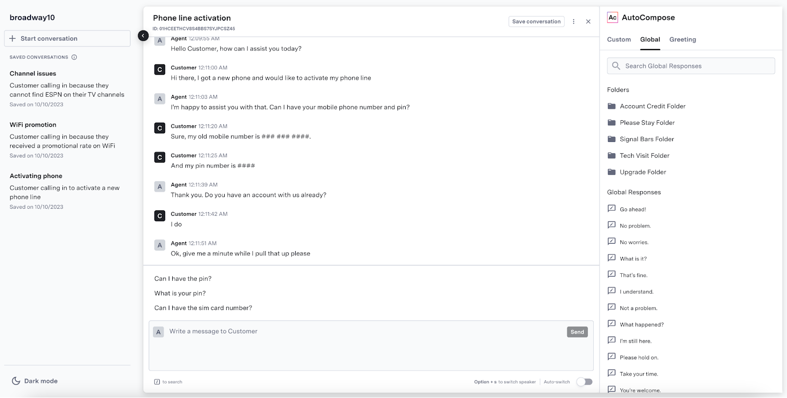 AutoCompose now supports configuration of the global response list in ASAPP’s AI-Console. Users can manage responses through bulk uploads via CSV files or targeted edits in the UI. This self-serve capability enables teams to maintain an up-to-date response library that improves suggestion quality and coverage for agents.