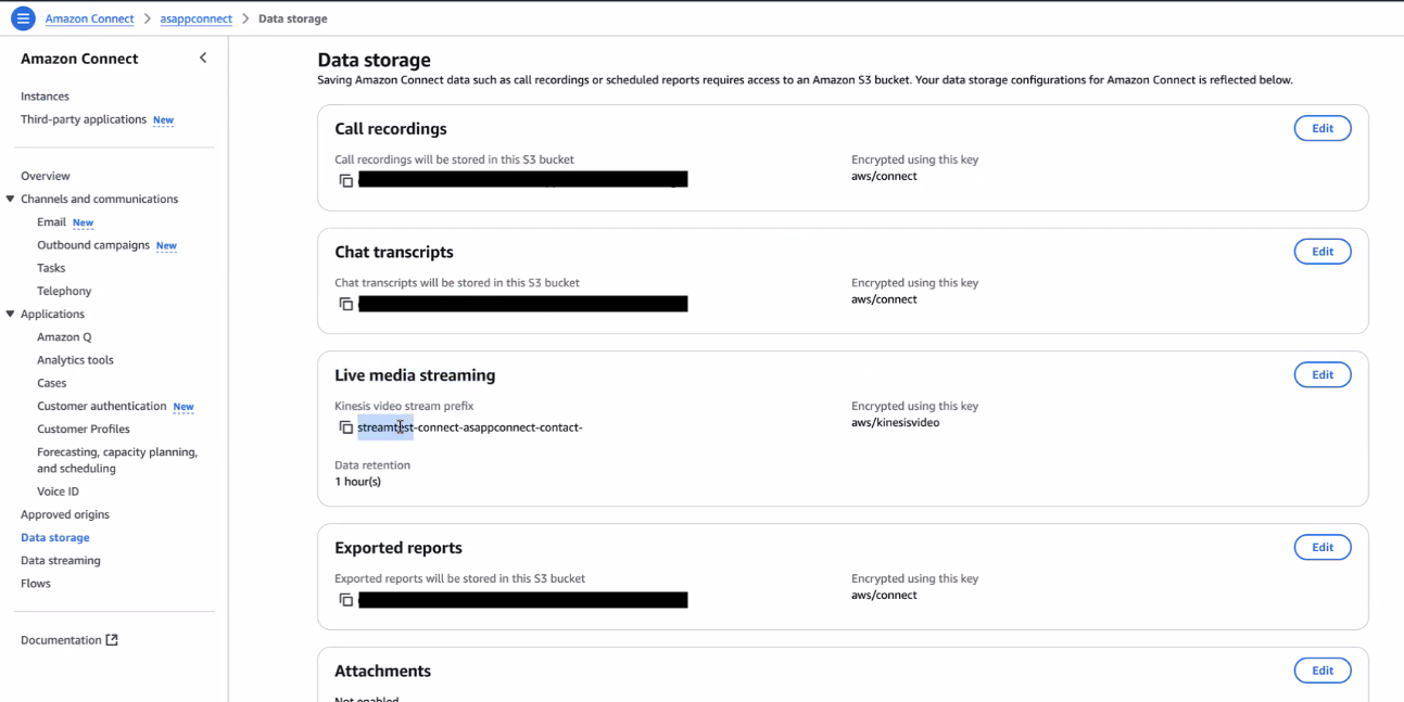 - Creating/managing IAM roles/policies: create a policy permitting list/read operations on the Kinesis Video Streams associated with the Amazon Connect Flow