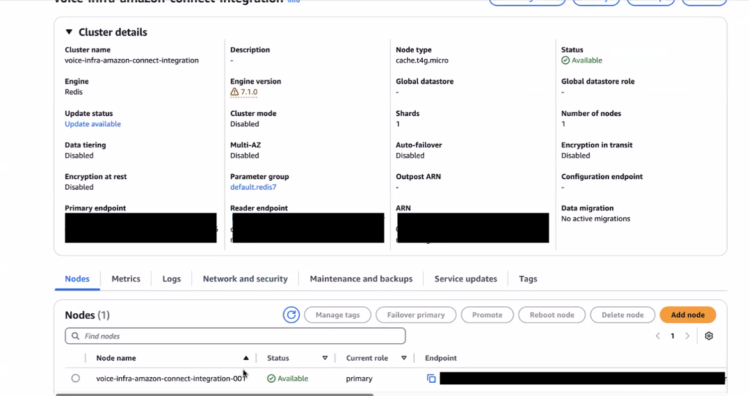 The Amazon Connect Flow uses ElastiCache (Valkey engine) to store ordered list of actions for each call. Follow these steps to create and configure your Valkey Cache in AWS ElastiCache:-