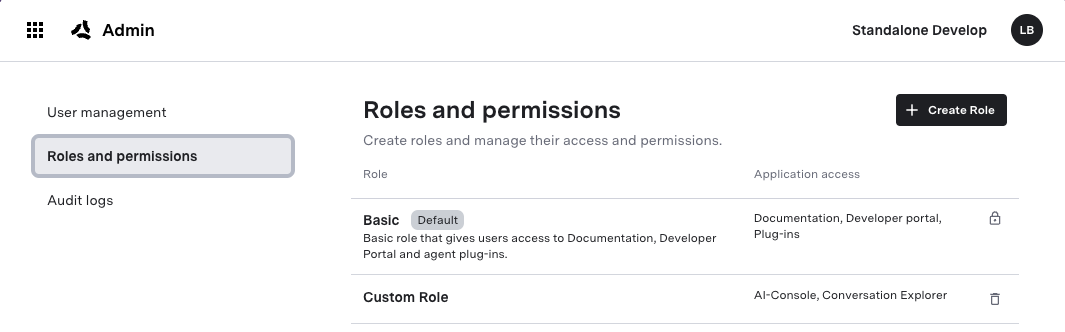 Access to ASAPP is managed via roles. A role is a collection of permissions which dictate what UI elements a user has access to. By default, all users must have the Basic role, allowing them to log in to the dashboard. But you may create and assign as many roles as you like per given user.