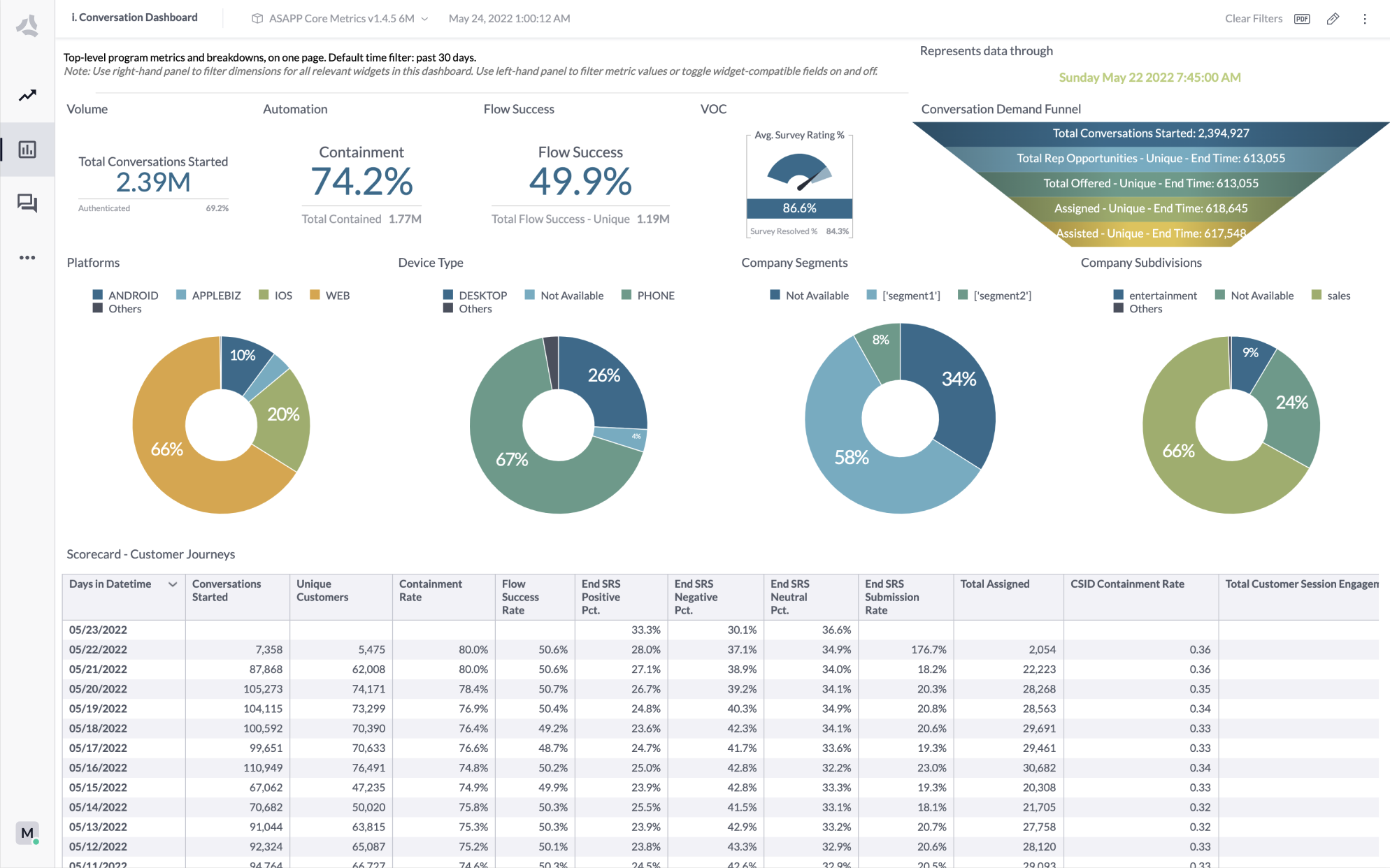 - Program dashboards provide a deep overview of primary conversation and agent metrics
