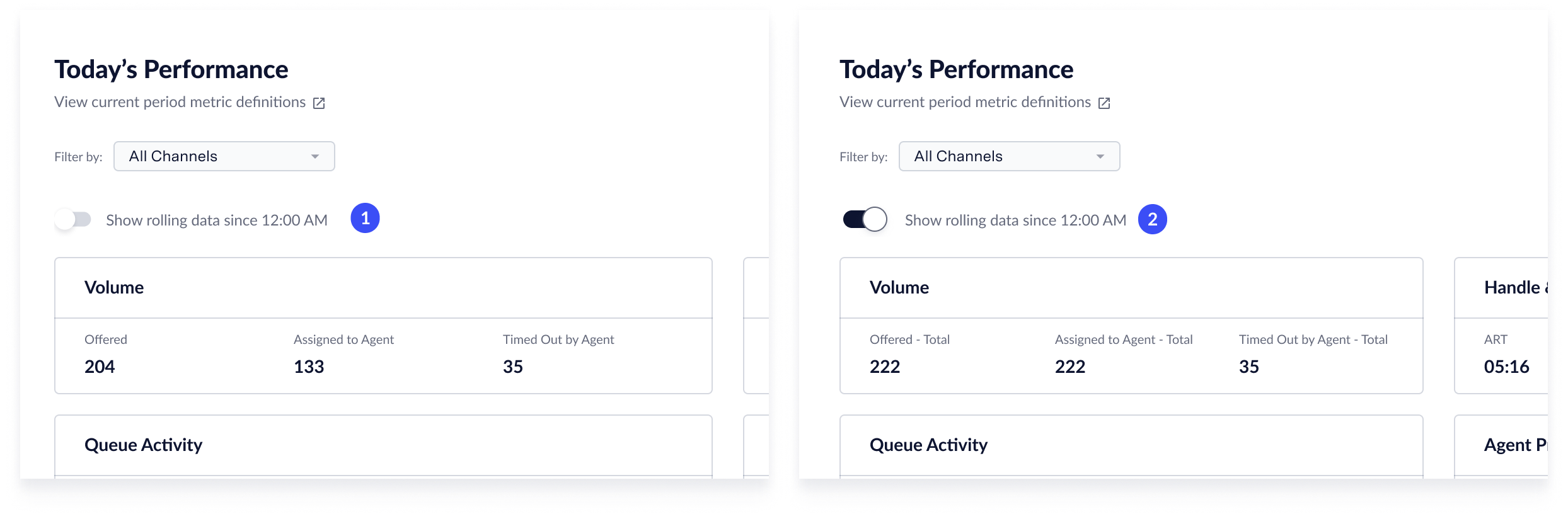 - Since 12 am: Click the toggle to display ‘current period’ metrics.
