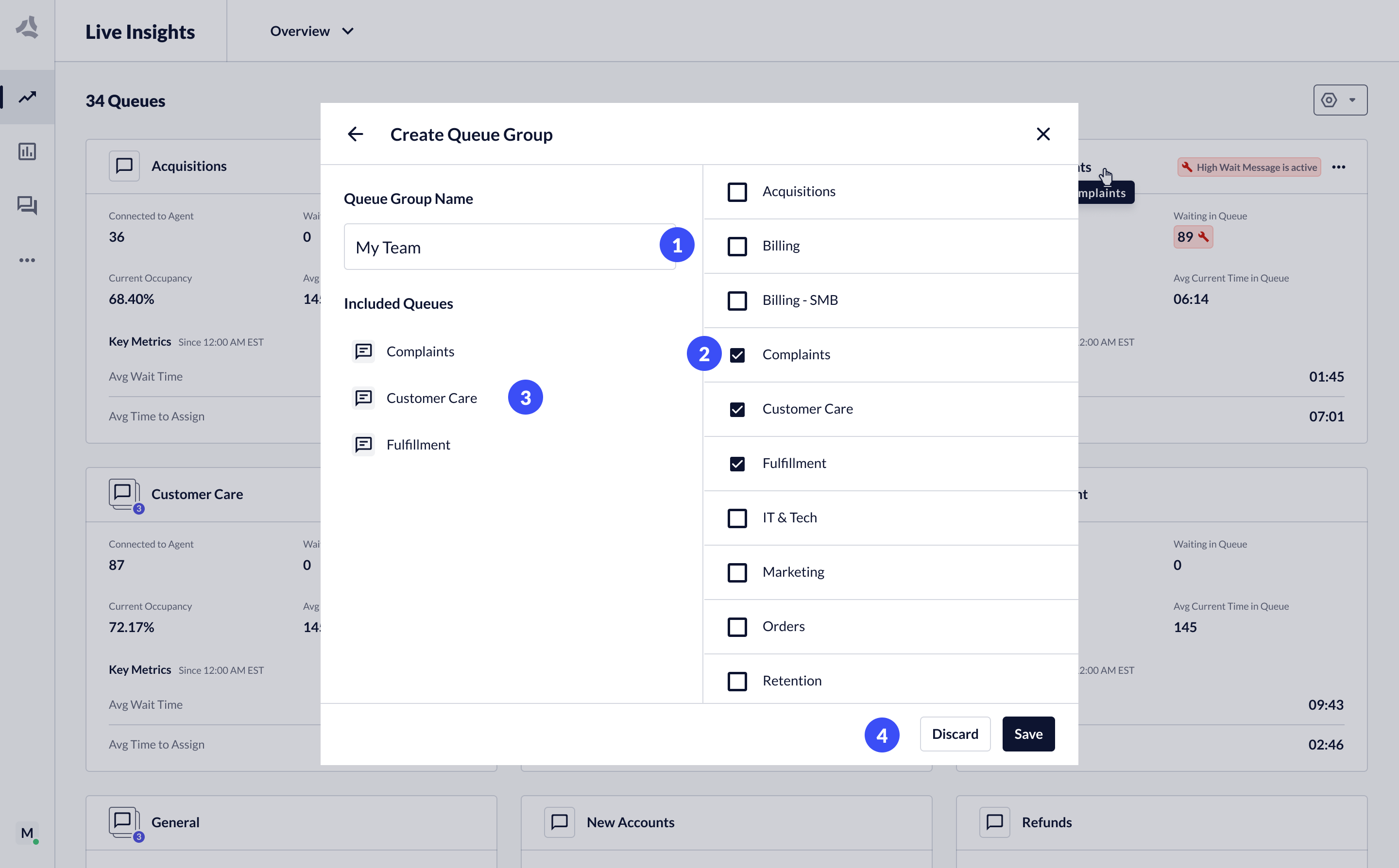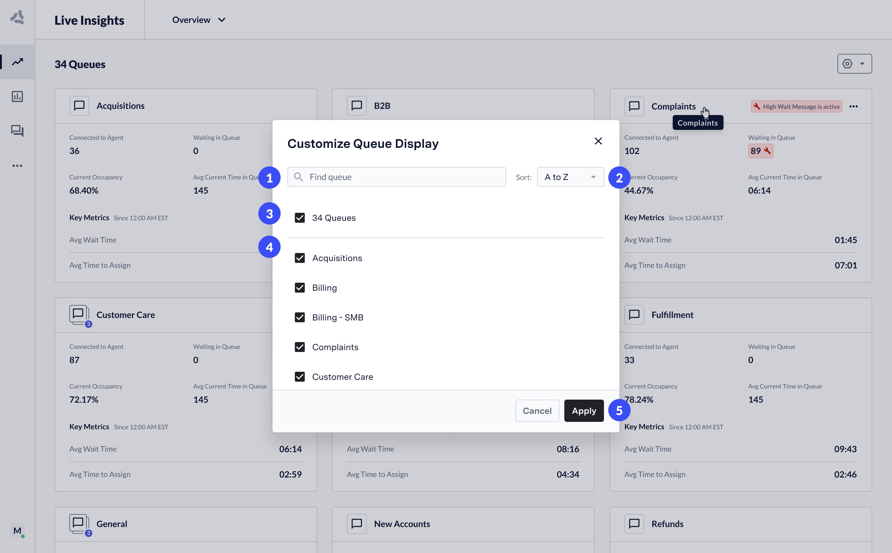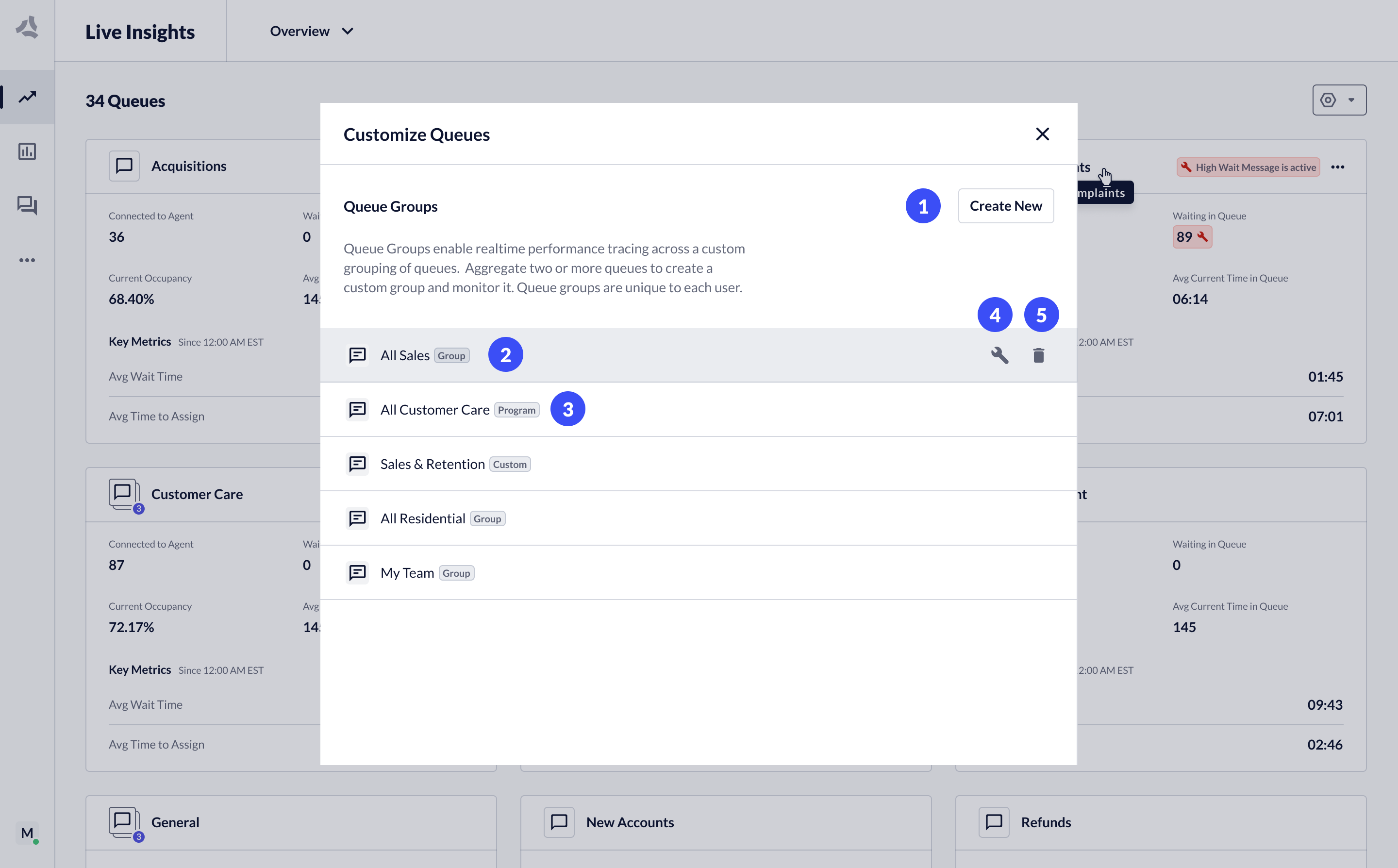 ASAPP supports customization features to change the display of queues, as well as create and manage queue groupings.