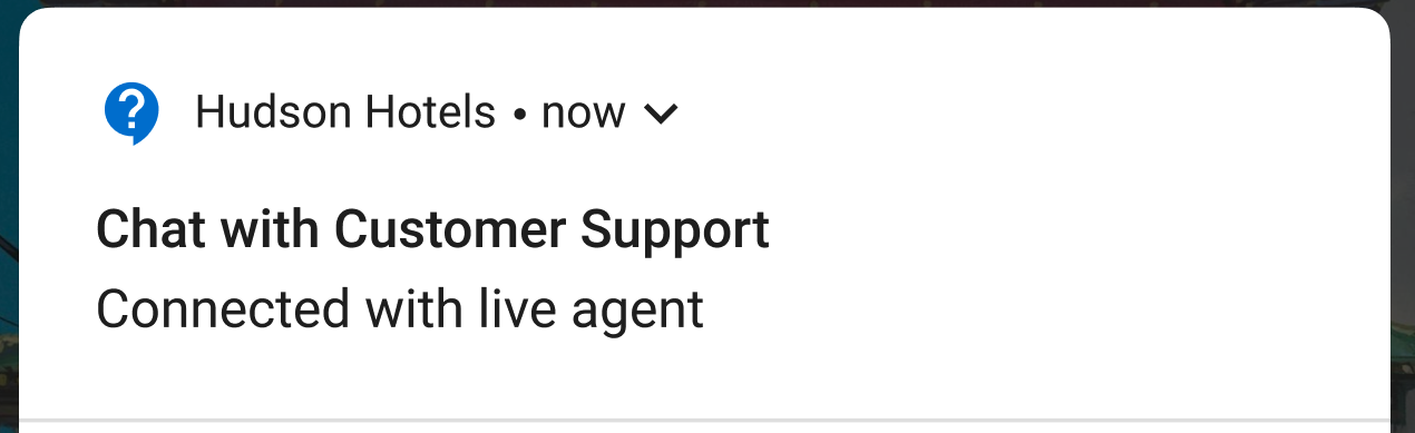 ASAPP’s systems may trigger push notifications at certain times, such as when an agent sends a message to an end customer who does not currently have the chat interface open. In such scenarios, ASAPP calls your company’s API with data that identifies the recipient’s device, which triggers push notifications. ASAPP’s servers do not communicate with Firebase directly. ASAPP provides methods in the SDK to register and deregister the customer’s device for push notifications. For a deeper dive on how ASAPP and your company’s API handle push notifications, please see our documentation on Push Notifications and the Mobile SDKs. In addition to this section, see Android’s documentation about Firebase Cloud Messaging and specifically how to setup Android Cloud Messaging.Enable Push Notifications