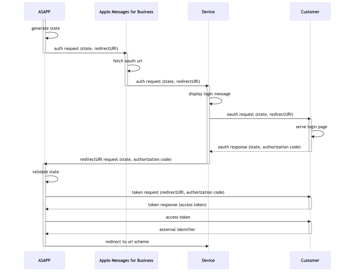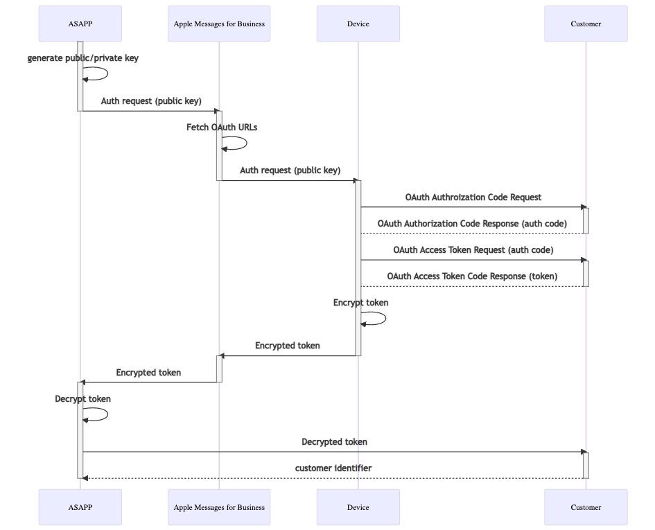 Apple Messages for Business supports Customer Authentication, which allows for a better and personalized customer experience. You can implement Authentication using OAuth.OAuth