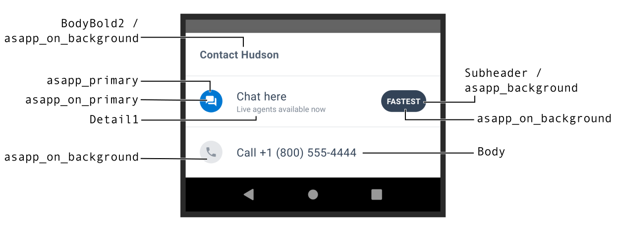 Chat Instead uses the ASAPP text styles and colors. For more information on how to customize, go to Customization.