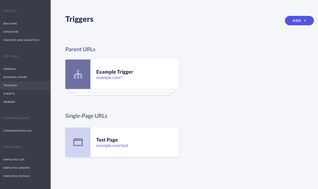 - Click the Add + button from the Triggers settings page.
