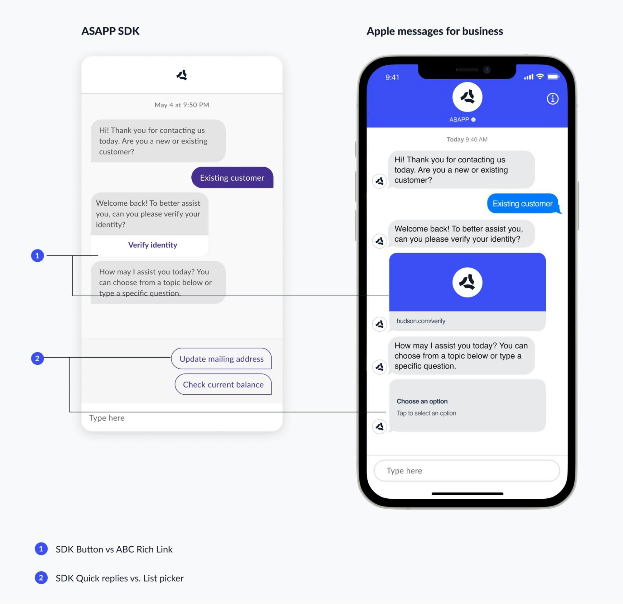 The ASAPP SDK has quick replies, while Apple Messages for Business supports list pickers.