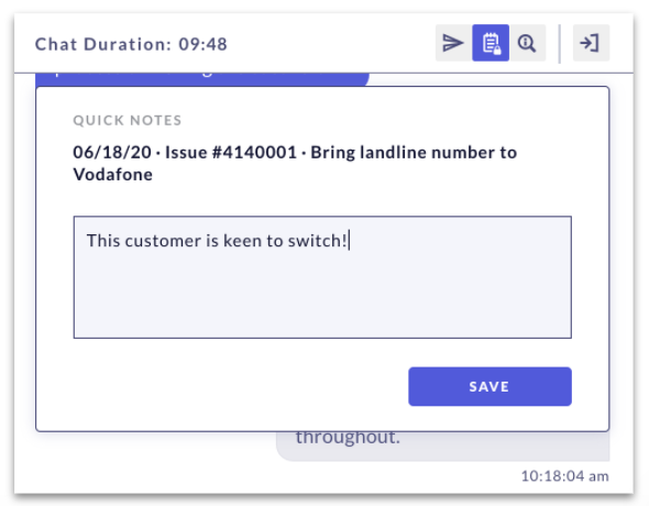 In Desk: During the conversation, click on the Notes icon at the top of the center panel. The issue ID is next to the date. The issue ID is also in the Left Hand Panel and End Chat modal window.