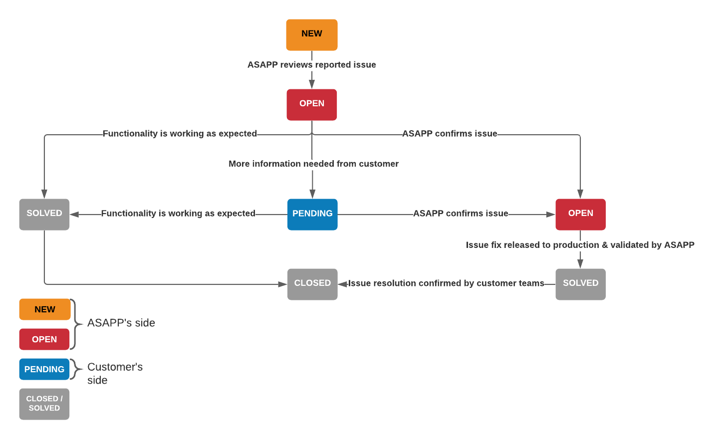 - ASAPP maintains all client reported issues in its own ticketing system.